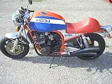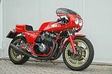 Following the demise of MV Agusta in 1978, Magni turned to Honda for a supply of engines. An agreement to use the 4-cylinder CB900 Bol d'Or engine was made. Two variants were made; the naked MH1 which used Honda forks and wheels and the faired MH2, which used Italian forks, wheels and brakes.[2][30] The exact specification of the machines varied according to the purchaser's requirements. Some had Eckert engine tuning components fitted and produced 120 bhp (90 kW).[31] Around 300 Honda engined machines were made, many being sold in Germany.[4]