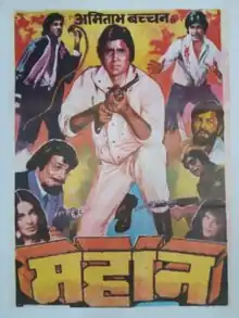 Mahaan (transl.Great) is a 1983 Hindi-language action drama film produced by Satyanarayana and Suryanarayana and directed by S. Ramanathan. The film stars Amitabh Bachchan in a triple role alongside Waheeda Rehman, Parveen Babi, Zeenat Aman, Ashok Kumar, Amjad Khan, Kader Khan, Aruna Irani, Sujit Kumar and Shakti Kapoor. The music is by R.D. Burman.The film is an official remake of the 1978 Kannada film Shankar Guru.[2][3]
