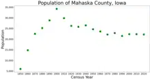 Mahaska County is a county located in the U.S. state of Iowa. As of the 2020 census, the population was 22,190.[1] The county seat is Oskaloosa.[2]