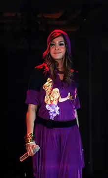 The following year, Maia garnered a role in the Trans TV-funded comedy programme Extravaganza, where she was the only non-Sundanese cast member.[14] Also in 2006, Ratu released Nomor Satu (Number One), with pop-rock influences;[1] Estianty wrote most of the songs.[15] The album was a commercial success, selling 200,000 copies nationally on the day of its release, a record for a work by a female Indonesian group.[12] However, conflict between Dhani and Estianty, as well as concerns over Jameela's payment, led Ratu to disband in 2007.[16][17]