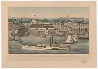 The Washington wharf has hosted a fish market since the 1790s, when fisherman sold their catch directly off their boats.[4] The Maine Avenue Fish Market has been in continuous operation since 1805,[5] making it the oldest operating fish market in the United States and 17 years older than New York City's Fulton Fish Market,[6][1] which was moved to the Bronx in 2005. The Maine Avenue Market was moved a few blocks along the Washington Channel in the 1960s.