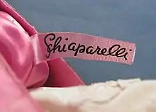 A tag from a vintage Schiaparelli design, using Elsa Schiaparelli's signature "shocking pink"