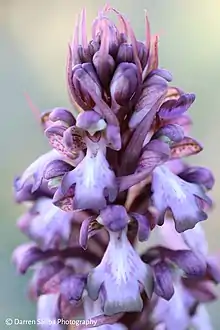 Conical orchid: The colour of the flowers varies from plant to plant. Almost white to dark red with several spots. One of many orchids that can be seen in the park and can be found flowering in late winter.
