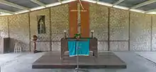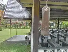 Photo of the Lutheran Church at Malahang Mission Station, Lae, Morobe Province. The new bell tower to the right of the picture.