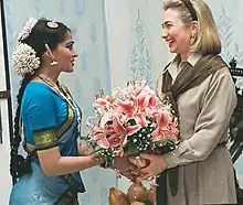 Malavika meeting United States First Lady Hillary Clinton in 1995