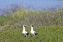 Malden is an important breeding island for about a dozen species including masked boobies (Sula dactylatra), red-footed booby (Sula sula), tropicbirds (Phaethontidae), great frigatebird (Fregata minor), lesser frigatebird (Fregata ariel),[5] grey-backed tern (Onychoprion lunata), red-tailed tropicbird (Phaethon rubricauda) and sooty terns (sterna fuscata). It is also an important winter-stop for the bristle-thighed curlew (Numenius tahitiensis), a migrant from Alaska,[3] and other migratory seabirds (nineteen species in all).