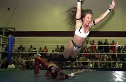Hosaka puts Ingrid Isley in a headlock, 2016