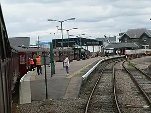 Mallaig railway station is a railway station serving the ferry port of Mallaig, Lochaber, in the Highland region of Scotland. This station is a terminus on the West Highland Line, 41 miles (66 km) by rail from Fort William and 164 miles (264 km) from Glasgow Queen Street.[4] The station building is Category C listed.[5] ScotRail, who manage the station, operate most of the services.