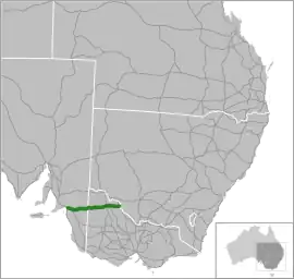 Mallee Highway[4] (formerly Ouyen Highway in Victoria) is a highway in south-eastern South Australia and north-western Victoria, running mostly across the Mallee plains. It forms part of the shortest route between Adelaide and Sydney.