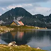 Tevnoto Lake is the largest and northernmost of the group, located in the immediate vicinity of the summits of Momin Dvor and Valyavishki Chukar.[4] It has an elongated curved shape slightly resembling a kidney. Reaching length of 487 m, width of 220 m and area of 62,490 m2, it is the eight largest lake in the mountain range and largest one in Bulgaria above 2,500 m. Its exact altitude is 2,519 m, which makes it the sixteenth highest lake in Pirin. The depth is 3.9 m; the water volume is 116,570 m3.[4][5] The homonymous Tevno Ezero shelter is situated near the out-flowing stream to the south.[4][6] Its natural beauty and majestic surroundings of rugged peaks make it a popular tourist destination.[6]