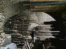The railway arches which run the length of the market were built between 1836 and 1839 for the London and Greenwich Railway, the capital's first steam railway and the earliest elevated railway in the world.[3] The line still carries Southeastern trains at regular intervals From London Bridge to Greenwich and the wider South East.[4]