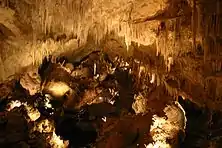 Mammoth Cave is a large limestone cave 21 km (13 mi) south of the town of Margaret River in south-western Western Australia, and about 300 km (190 mi) south of Perth. It lies within the Leeuwin-Naturaliste National Park and is surrounded by karri and marri forest. There have been extinct animal fossils found in Mammoth Cave.