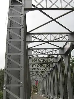 The bridge spans 80 metres (260 ft) above the Río Grande de Manatí.[3] For Puerto Rico, the span is high, 44 feet (13 m) above the river, "above a spectacular curving canyon of vertical walls traversed by the Manati River". It is a rare type of bridge: a steel double intersection Pratt truss, above a concrete substructure, and is the only such highway bridge in Puerto Rico. Its a 3.8 metres (12 ft) wide, one-lane road.[4] The bridge is visited by tourists.[5]