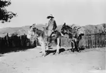 Eventually around 500 claims existed. Many Los Burros mines were registered and renamed, likely filed under several different names. Placer claims were filed along Plaskett Creek, Willow Creek and tributaries, and Alder Creek.[7] Cruikshank, who partnered with James Krinkle, shipped an estimated $62,000 in gold ore from the Last Chance Mine.[12] Since there was no road into the area, the crushed gold ore was sacked and transported on donkeys (hence, los burros) over the Santa Lucia Mountains to the Nacimiento River. From there they were hauled on sleds by mules over about 4 miles (6.4 km) over steep, uphill terrain to the mines.