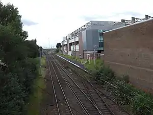 Manchester United Football Ground railway station, often known as the Old Trafford Halt or Manchester United FC Halt,[2] is a railway station adjacent to Old Trafford football stadium in Old Trafford, Greater Manchester, England. It is on the southern Liverpool Lime Street-Manchester Piccadilly railway line, between Deansgate and Trafford Park.
