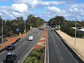 The southern part starts at Stakehill Road and is a dual carriageway and part of National Highway 1. It is actually a continuation of Ennis Avenue coming from Rockingham. It continues to Mandurah, where it intersects with Mandjoogoordap Drive at a roundabout before crossing Pinjarra Road and heading west to meet Old Coast Road which was traditionally the main road to Bunbury and South West of Western Australia, until the opening of Forrest Highway superseded it. However Old Coast Road still serves as an alternative route there.