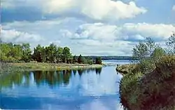 The Manitou River ends at Michael's Bay on North shore of Lake Huron at the south end of Manitoulin Island.