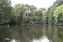 ![]() The ornamental pond, island and viewing platform in Manor House Gardens, Lee | |