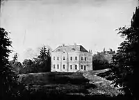 Pre-1901 photograph of Silverton Park, south front viewed from the south-east. The holly tree survives today on the site now overgrown with mature trees