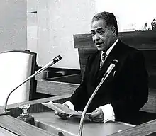 ![]() Haseeb addressing the WHO's General Council after receiving the Shousha Prize in 1973 | |