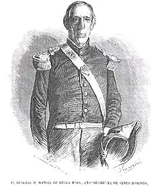 Manuel de Regla Mota y Álvarez (November 21, 1795 – May 1, 1864) was a Dominican military figure and politician. Mota served as the 5th president of the Dominican Republic from May 26, 1856, until October 8, 1856. Prior to that he served as the country's vice president under Pedro Santana.
