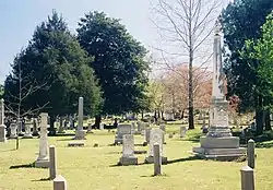 Maple Hill Cemetery is the oldest and largest cemetery in Huntsville, Alabama, United States. Founded on two acres (8,000 m2) in about the year 1822, it now encompasses nearly 100 acres (400,000 m2) and contains over 80,000 burials. It was added to the Alabama Historical Commission's Historic Cemetery Register in 2008, and to the National Register of Historic Places in 2012. Its occupants include five governors of Alabama, five United States senators, and numerous other figures of local, state, and national note. It is located east of the Twickenham Historic District.