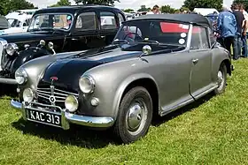The car named the "A", later joined by the more powerful "100", was based on the Rover P4 75 with the chassis shortened by 9 inches (230 mm) from 111 inches (2,800 mm) to 102 inches (2,600 mm), the track remaining the same at 52 inches (1,300 mm). The suspension was stiffened retaining the coil sprung independent front suspension and elliptical sprung live rear axle. In view of the much lighter 2/3-seater (a single bench seat but the seats were separated on the "100"[1]) open[note 1] coachwork the engine was moved back to improve handling and front / rear weight distribution. The Rover gearbox was retained with optional Laycock–de Normanville overdrive[1] but not the Rover free wheel mechanism. The gearchange moved from column to floor.[2]