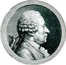 The archetype of the amicable Frenchman, the marquis of Croismare earned the nickname "The Philosopher" for giving up ambition early in life. Alternatively, very devout, strong-minded or indifferent, he fell in love with a Protestant girl of his countryside, Suzanne Davy de La Pailleterie.[1] His fervor for the Catholic religion was such that he made Suzanne La Pailleterie his proselyte. Her conversion, effected on 30 October 1734 at Cagny, is perhaps the only one he achieved. After his marriage, on 3 August 1735, she gave him two sons and a daughter. Having lost her early, he nearly died of grief.
