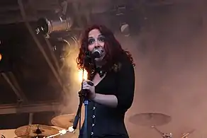 ![]() Bovio performing with The Gentle Storm at Wacken Open Air 2015 | |