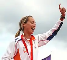 Marcelien Bos-de Koning (born 10 May 1978) is a Dutch three-time world champion and Olympic silver medalist sports sailor.[1][2] She represented her country at the 2008 Summer Olympics in Qingdao. With crew member Lobke Berkhout Bos-de Koning took the silver medal as helmsman in the Women's 470.[3][4] Bos-de Koning returned as crew member to the 2012 Olympic match regatta's in Weymouth in the Elliott 6m.[5][6] With helmsman Renee Groeneveld and fellow crew member Annemieke Bes Bos-de Koning took 8th place.[7]