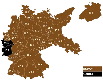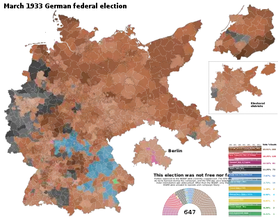Federal elections were held in Germany on 5 March 1933, after the Nazi seizure of power on 30 January 1933 and just six days after the Reichstag fire. The election saw Nazi stormtroopers unleash a widespread campaign of violence against the Communist Party (KPD), left-wingers,[1]:317 trade unionists, the Social Democratic Party,[1] and the Centre Party.[1]:322 They were the last multi-party all-German elections until 1990.