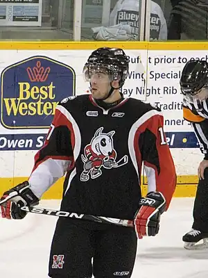 ![]() Marco Insam playing for the Niagara IceDogs during the 2009-10 OHL season. | |||
