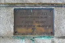 Marconi Plaza is an urban park square located in South Philadelphia, Philadelphia, Pennsylvania, United States. The plaza was named to recognize the 20th-century cultural identity in Philadelphia of the surrounding Italian-American enclave neighborhood and became the designation location of the annual Columbus Day Parade.