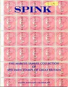 Samuel began collecting specimen stamps in 1924 when his father acquired a collection which contained many specimens. He was allowed to keep the specimens in return for removing the other stamps from the album. He subsequently formed a comprehensive collection of specimen stamps at a time when few other collectors were interested in them. Dealers were pleased to sell him their unwanted stamps and one was quoted as saying "The trouble with Marcus is that all his stamps are overprinted specimen".[2]