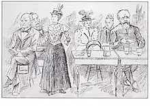 Bondfield's brother Frank had established himself in London some years earlier as a printer and trades unionist,[15] and in 1894, having saved £5, she decided to join him. She found London shopworking conditions no better than in Brighton,[16] but through Frank her social and political circles widened. She became an active member of the National Amalgamated Union of Shop Assistants, Warehousemen, and Clerks (NUSAWC), sometimes missing church on Sundays to attend union meetings.[17] Her political and literary education was centred on the Ideal Club, where she met Bernard Shaw, and Sidney and Beatrice Webb. Under the influence of these socialist luminaries, she joined the Fabian Society and later the Independent Labour Party (ILP).[4][18]