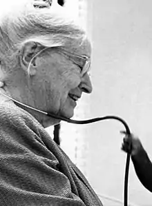 In 1918, during an outbreak of Spanish influenza in the Wilmington area, Handy was asked by the Board of Health to open a paediatric ward at People's Settlement staffed by volunteers and with very little equipment.[6] She subsequently established a pediatric clinic and became Assistant Chief, and in 1921, Chief, of Pediatrics at Delaware Hospital where she set up a nursery for premature babies.[5] Handy collected surplus breast milk in the community to feed the babies of mothers who could not breast feed, and in 1945 founded the Mother's Milk Bank with Margaret Trentman, a hospital board member whose baby son had died because she was unable to nurse him.[4][5] The bank supplied breast milk to mothers throughout the United States as well as for research purposes, for 40 years.[7] She also helped to establish ophthalmology as a speciality in Delaware, with Norman Cutler becoming the first state-certified ophthalmologist in 1947.[8]