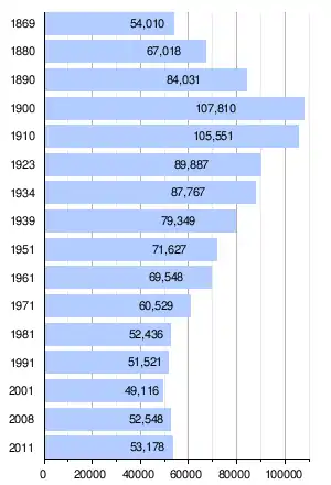 In 1869, nearly 54,000 people lived in the district area. Over the next 30 to 40 years, the population doubled to almost 108,000 (circa 1900). Although it was only after World War I when the large apartment buildings were built along the Vienna belt, the population declined continuously until the 2001 census, due to the increased housing needs. Since the record-low population of 49,116 in 2001, there has again been a slight increase in the population, of about +1% per year.