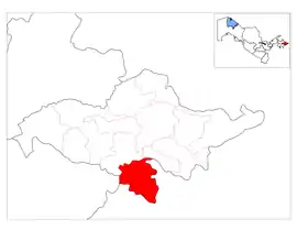 Marhamat (also: Marxamat) is a district of Andijan Region in Uzbekistan. The capital lies at the city Marhamat.[1] It has an area of 320 km2 (120 sq mi)[2] and it had 178,700 inhabitants in 2022.[3]