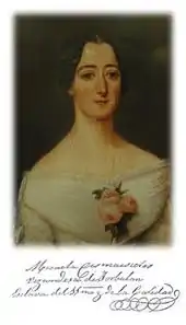 The Ursulines oversaw her education. Her social connections led her to having cordial relationships with the French and Spanish monarchs as well as Belgian monarchs.[1] She spent most of her childhood with her brother Diego - the Spanish ambassador to the monarchs. Dances and all sorts of social gatherings and horse riding were the norms for her. She received the title of "Viscountess of Jorbalán. She tended to ill people during a cholera epidemic in 1834.