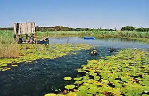The river starts off as the Groot Marico River in the Marico Oog (Eye of Marico in Afrikaans), near Rustenburg and Swartruggens in the North West Province of South Africa. The source of the river is a large dolomitic hole in the ground with clear water, which is also a spectacular scuba diving spot.[5] It flows northwards as the Great Marico (Groot Marico) and further downstream the smaller Klein Marico River joins forces.[6] For a stretch it is named Madikwene River, but after the Sehubyane River (Sandsloot) joins its left bank, it reverts to the name Marico.[7]