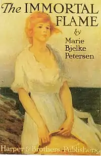 She had short sketches and stories published in various newspapers and magazines before achieving success with her first novel.[9] Three religious tracts were published as The Mysterious Stranger (1913), Before an Eastern Court (1914) and Muffled Drums (1914). The success of the first of these tracts helped her to find a publisher for her first novel, The Captive Singer (1917).[6] It was based on a guide who sang at Tasmania's Marakoopa Cave and was a financial success[3] selling 150,000 copies in English and a further 40,000 in Danish translation. This first novel established Marie Bjelke Petersen as a significant Australian writer.[6]