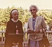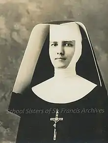 Marie Pauline Brenner was born in 1906, the daughter of Aquilin and Rosa Brenner. Aquilin had emigrated from Steinbach, Bavaria in 1874. Rosa (Weber) Brenner emigrated from Sulz, Switzerland in 1884. They married in 1890 and settled in the St. Paul area of Minnesota. In 1926 at the age of 20, Marie joined the School Sisters of St. Francis, a religious order with a focus on teaching. The order had been established in Schwarzach Germany during the reign of Otto von Bismarck. Their first school was opened in Wilmette, IL in 1877.[2][3] Upon joining the order, Marie took the name of Sister Rebecca. She was assigned to teach fourth through seventh grades at St. Nicholas School Aurora, IL.[1]