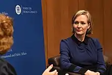 The Wall Street Journal called her "Europe's most wired politician",[6] while CNN called her a "rising Dutch star" who makes an increasingly rare "passionate and public case for liberalism and globalization".[7] She was selected as one of the "Politico 28" in 2017. During her last months in office in 2019, Politico also called her one of the 40 MEP's who mattered in 2014–2019.[8] According to Politico, Schaake is the "ultimate digital MEP" whose name has been floated as a potential candidate for the foreign ministry".[9] The magazine also called her a "lead MEP on cybersecurity".[10] In 2017 she was invited as a 'civic leader' to address the Obama Foundation summit.[11] She publishes op-eds in the Financial Times,[12] The Guardian[13] and Bloomberg.[14]