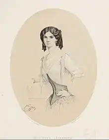 In 1852 she was in the United States where she appeared as a featured rider with E. F. and J. Mabie's Circus before performing for Den Stone's Circus in 1854.[2] In about 1855 the Zanfettta family were hired as part of the troupe of performers of Antoine Ravel (1812-1872) with whom Marietta Zanfretta also did solo and ensemble dancing. She quickly became popular with audiences because of her beauty, charm and skill on the tightrope on which she performed en pointe in addition to doing pirouettes and somersaults.[3] For the Ravel Troupe the Zanfrettas played 300 performances at Niblo's Garden in New York during 1857–59.[3][4] As her father's joints began to stiffen with age, and finding himself unable to perform, he returned to Paris where, because of his physique, he became an artists' model.[3]