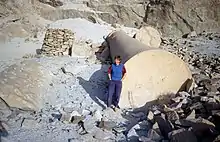 ![]() van der Veen at one of the columns left at Mons Claudianus, Egypt | |