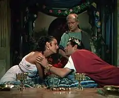 Screenshot of Marina Berti & Leo Genn from the trailer for the film Quo Vadis