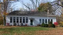 During the American Revolutionary War, the Marion community was the site of an encampment by French General Jean-Baptiste Donatien de Vimeur, comte de Rochambeau and his troops. In June 1781, French troops under Rochambeau's command left Farmington and marched 13 miles (21 km) to Marion, where they made their eighth camp along their route through Connecticut. They remained in the area for four days. Rochambeau and his officers took shelter in Asa Barns' tavern, and the troops set up camp on a hill on the other side of the road. The area of the encampment has since become known as French Hill, and a marker on the east side of Marion Avenue commemorates the French campsite. Rochambeau revisited Barns' tavern on the return march on October 27, 1782.[5][6][7] In 1987, the Asa Barns tavern came under the protection of the National Park Service when it was listed on the National Register of Historic Places for its architectural and historical significance.[8] The building is now a private residence.