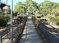In the 1960s, concerns were raised regarding the safety of pedestrians crossing at the southern end of the station, where no pedestrian barriers had been installed. This lack was seen as contributing to a fatality in 1967.[5] In response, a pedestrian footbridge was constructed in 1970,[6] and the then existing pedestrian maze barrier-equipped crossing at the northern end was removed. This ensured that the footbridge provided the sole personal access to both the platform and to the other side of the line. At the northern end, a more convenient low-level track crossing and station access was re-installed in the 1990s.