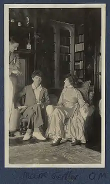 Gertler's patron was Lady Ottoline Morrell,[13] through whom he became acquainted with the Bloomsbury Group. She introduced him to Walter Sickert, the nominal leader of the Camden Town Group.[14] Gertler was soon enjoying success as a painter of society portraits, but his temperamental manner and devotion to advancing his work according to his own vision led to increasing personal frustration and the alienation of potential sitters and buyers. As a result, he struggled frequently with poverty.
