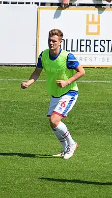 After a successful loan spell at the North East club, Hartlepool made the deal permanent on 1 August 2020, following Shelton's release from parent club Salford City.[21] He started in the first game of the season in a 2–1 win against Aldershot Town.[22] His first goal of the 2020–21 season came in a 1–1 draw at FC Halifax Town.[23] Shelton played in the 2021 National League play-off final as Hartlepool drew 1–1 with Torquay United at Ashton Gate, Bristol. During the Final, Shelton covered 22 kilometres in distance.[24] In the resulting penalty shoot-out, Shelton scored his penalty as Hartlepool were promoted to League Two after winning 5–4 on penalties.[25]